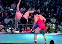 実はこの頃、アントニオ猪木のコンディションは最低、最悪でした。春に膝の半月板を損傷、夏には糖尿病を理由に年間2度の長期欠場を余儀なくされ、見た目にも筋肉が落ち、特に脚の細さが目立つようになって来ていました。フィニッシュに延髄斬りを多用するようになり”省エネファイト”と揶揄されるようになった時期です。