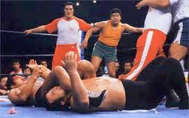 そこへ来てのこの“1対3”。1対2、3などの試合はアンドレ ザ ジャイアントやヘイスタック カルホーンなどの巨体レスラーがよく行う形式です。しかし、この試合のように同体格の選手同士の”変則マッチ”というのは、前代未聞です。