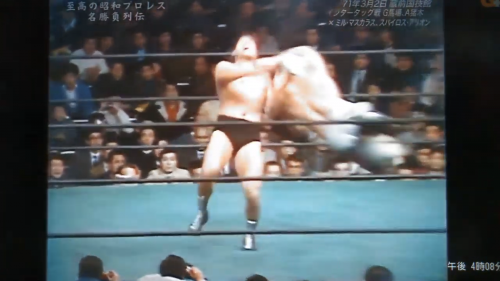 テレビ中継では導入されたての最新技術の「スローモーション」でこの攻防が何度もリプレイされ、マスカラスの美しい空中姿勢と、猛烈な受け身を取る猪木さんのコントラストが見事でした。
