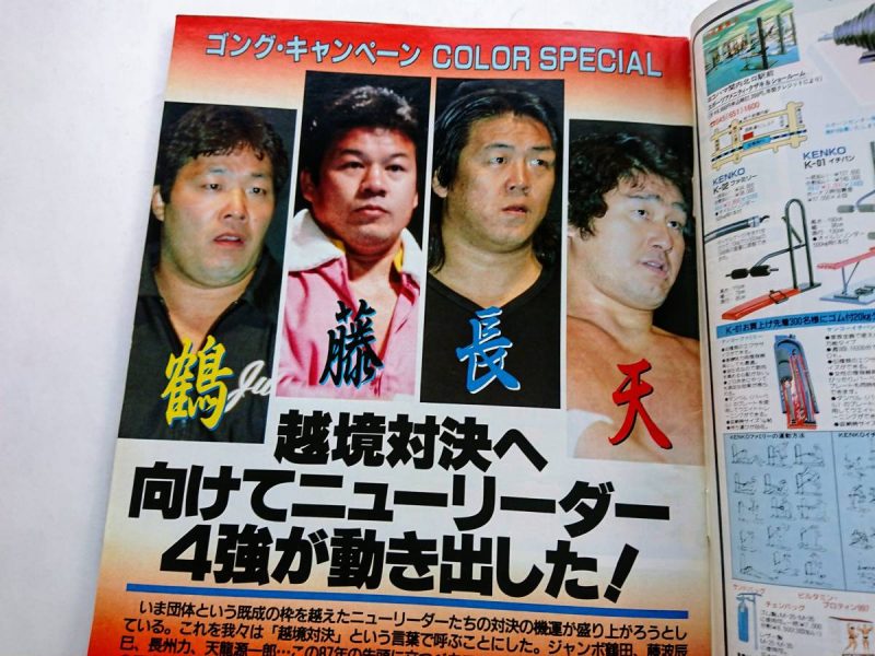 すかさず週刊ゴングは鶴田、藤波、長州、天龍ニューリーダー4人の頭文字をとって「鶴藤長天」キャンペーンを張り、「今こそ団体の垣根を超えた交流を!」と盛り上げます。