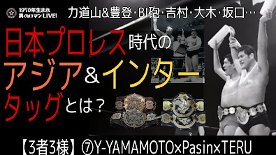 昭和「日本プロレス」時代の「アジアタッグ選手権」と「インターナショナルタッグ選手権」という、2つのタッグ・タイトルの誕生から獲得タッグチーム、思い出の名勝負について、リアタイ世代のY-YAMAMOTOさん、Pasinさんと3人で語り尽くします!